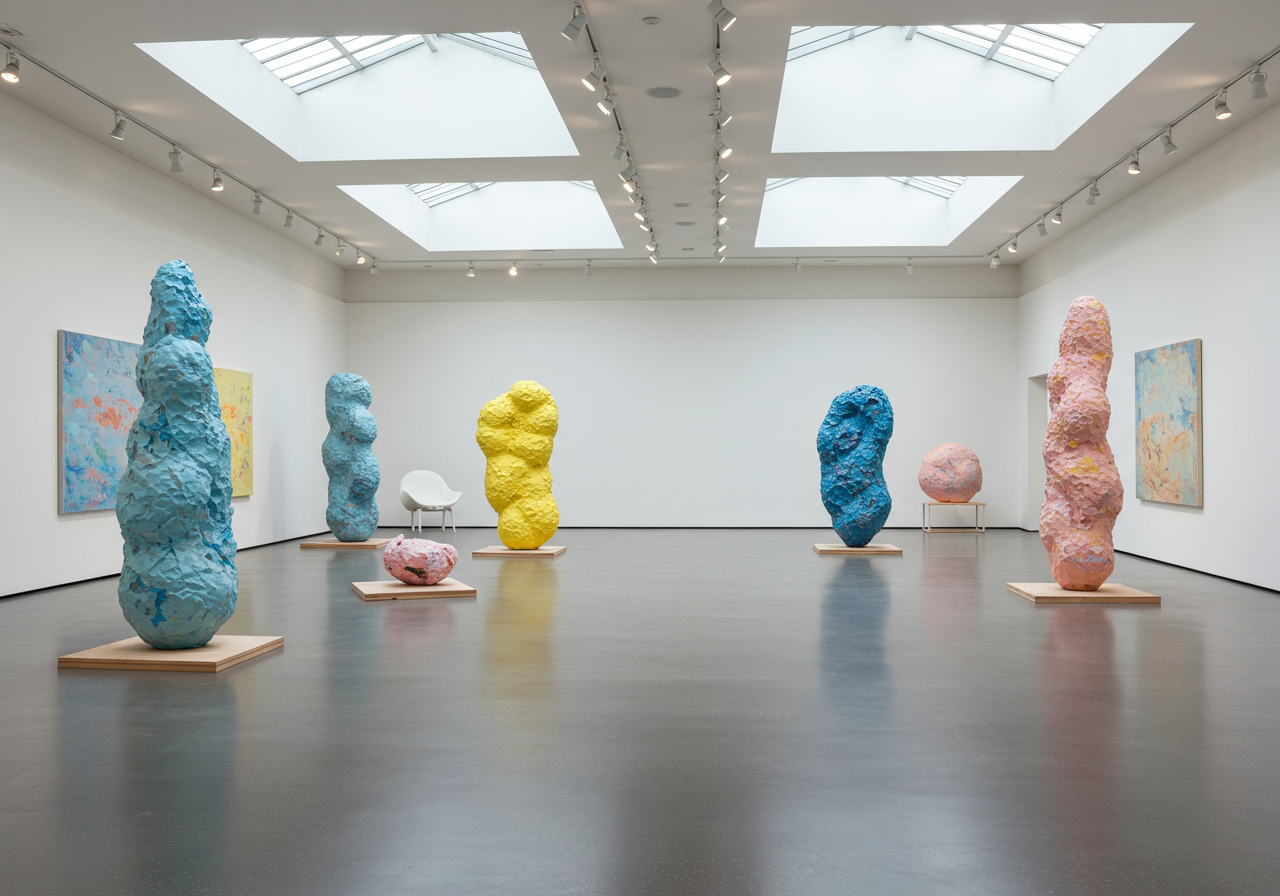 I have been obsessed with Franz West since first seeing his work about 12 years ago in Miami. This show was executed in 2010, only a few years before the artist’s death. Echolalia consists of seven colorful, larger-than-life sculptures that seem to stand slightly off-balance, interspersed with three cushioned divans. The work’s title—which refers to the repetition of words and sounds made by young children when learning to talk—was inspired by the artist’s son, who at the time of its creation was three years old and brought his own, distinct perspective to his father’s oversized works.