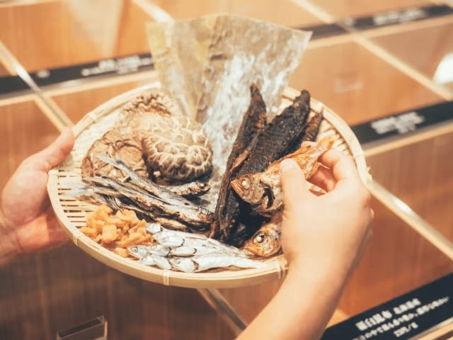 In Japan, "DASHI'' made from bonito flakes, dried sardines, kombu seaweed, and dried shiitake mushrooms, has been used in cooking for a long time. The deliciousness leads to a Japanese scholar naming the delicious ingredients "UMAMI." UMAMI, which means gently spreading in the mouth and leaving a pleasant aftertaste, is one of the proud aspects of Japanese culture.