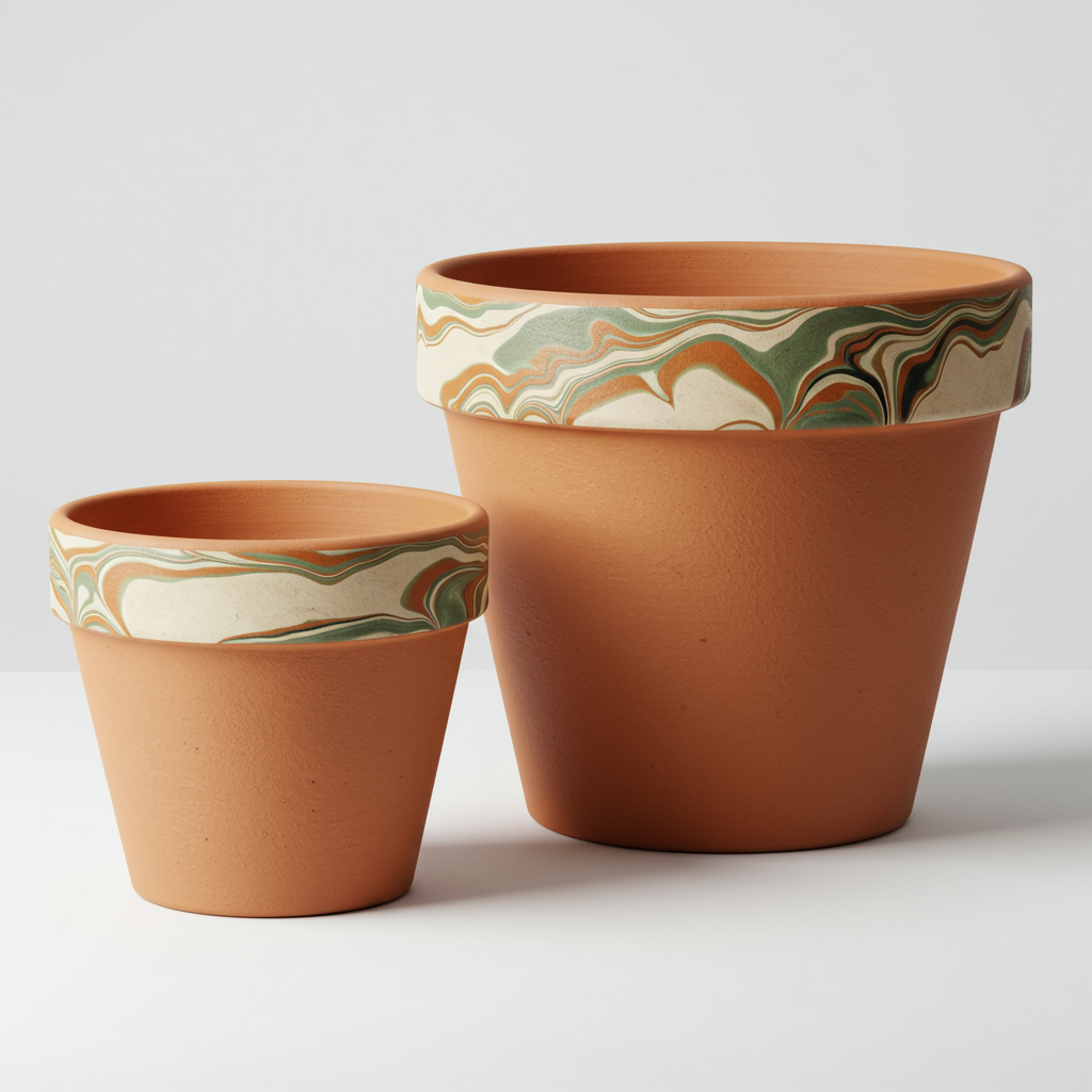Standard terracotta pot with a marbleized band. Comes in two sizes