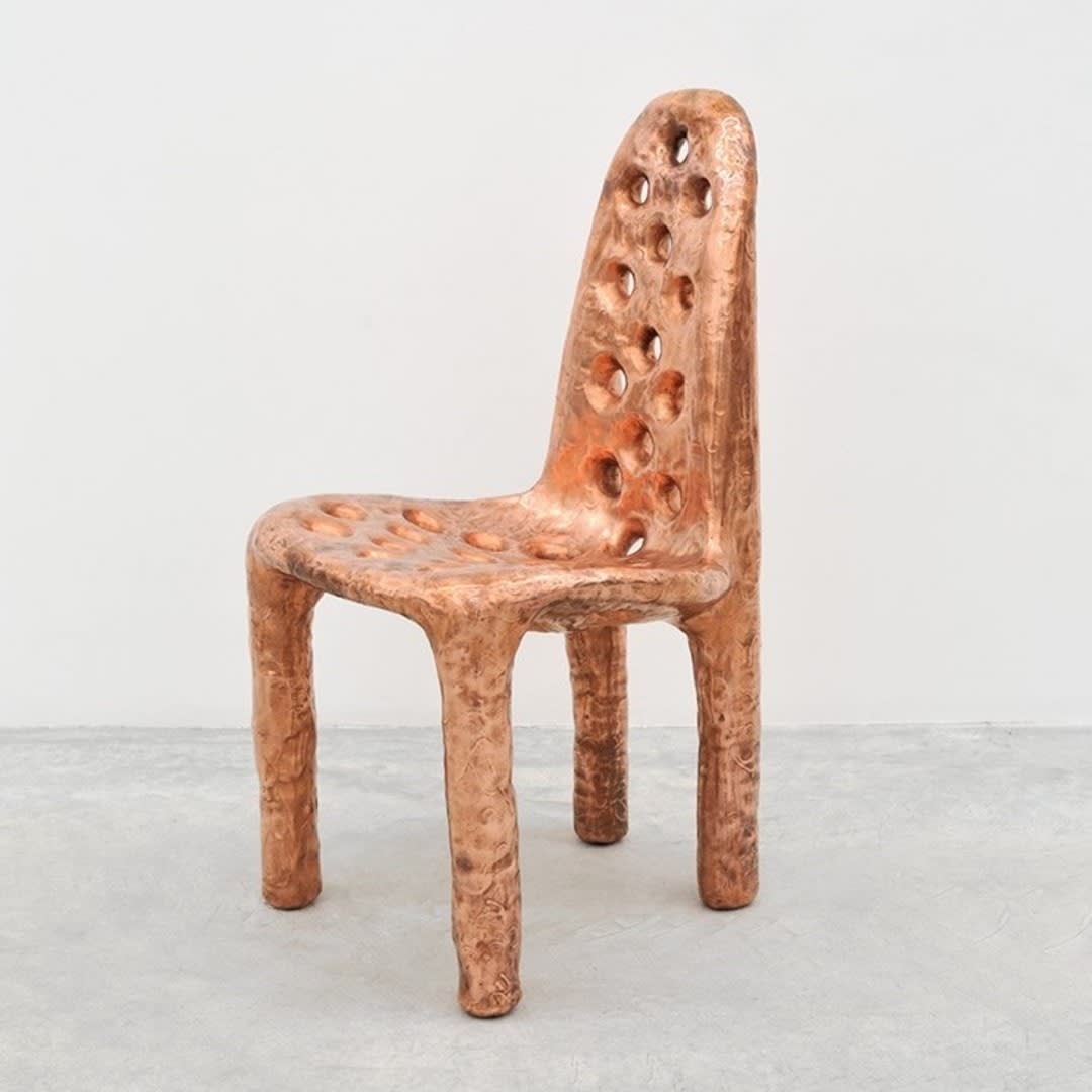 Max Lamb is a British designer who combines traditional - if not prehistoric - design methods with digital design. He is known for employing highly unusual approaches to using natural materials, including pouring pewter onto sand, and volcanic rock.