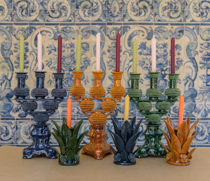 For those of you that know me well my favorite place to go every summer is Comporta. Outside of Comporta there is a small village called Melides in melides you will find a wonderful little gem of a store called Vida Dura. These candelabras and candle stick holders I have include above are from Mexico - Chandeliers made in terracotta, produced and glazed in Mexico, inspired by the sweet symbol of the region, resembling a crown of a pineapple.