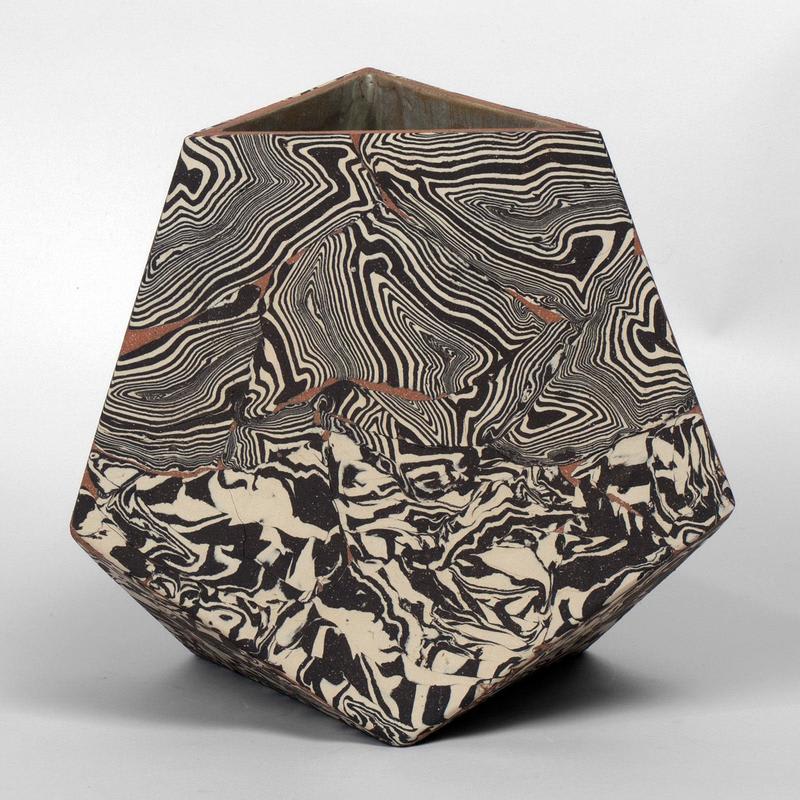 American artist Cody Hoyt has brought his graphic compositions into the third dimension with a series of unconventional ceramic-fired vessels. Trained as a painter and printmaker. Hoyt prides himself on his non- traditional process and takes inspiration from a wide range of mediums, drawing influences from ancient Japanese pottery to contemporary typography. His graphic, hand-layered striping, created by intricately layering and manipulating colored clay into slabs, injects an added dimension to his bold angular forms. I was lucky enough to see his first show in manahattan many years ago when he was with Patrick Parrish. He now shows with Future Perfect and his vessels are vbeautiful!