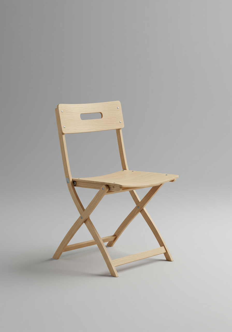 Folding camping chair made of birch wood, suitable for outdoor use thanks to its transparent layer with a satin finish.