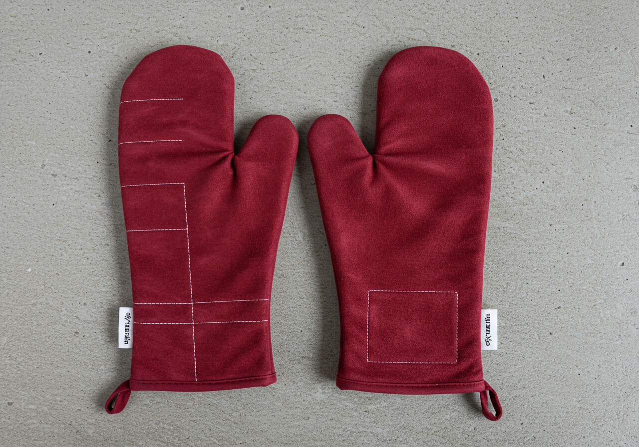 The mittens have extra padding on the palm and an extra long sleeve to protect your arms against burns from the oven edges.