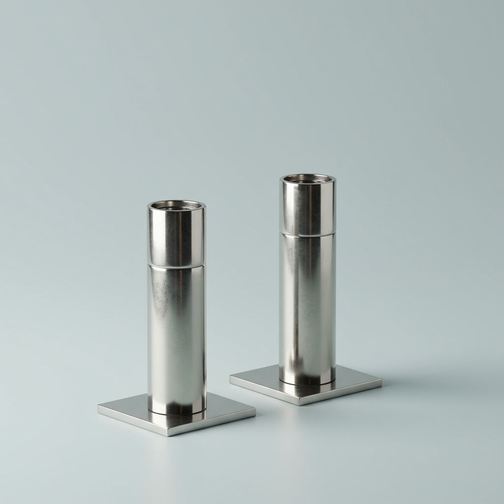 Carl Scheiger, a respected Viennese silversmith, was far ahead of his time when he designed these candlesticks in 1806. They are so avant-garde that, as first glance, they may seem to have been made 120 years later than their original production. Their low height was a response to a new demand for useful and easy to pack travel accessories.