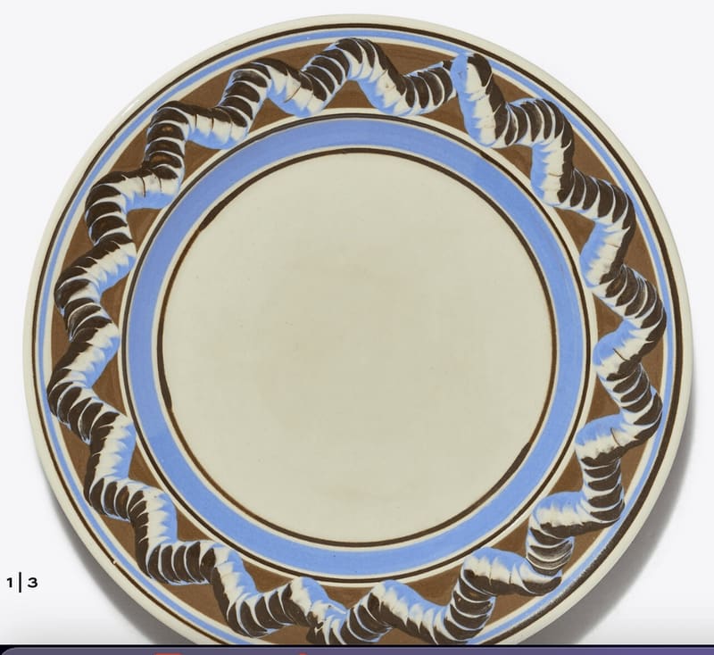 Inspired by 19th-century English mochaware: beautiful ceramics with a humble past, once common in old country taverns. Their abstract patterns were created by dripping pigment onto wet clay. The Tory Mochaware Dinner Plate is hand-painted in Arkansas by SJ Pottery. Set of two.