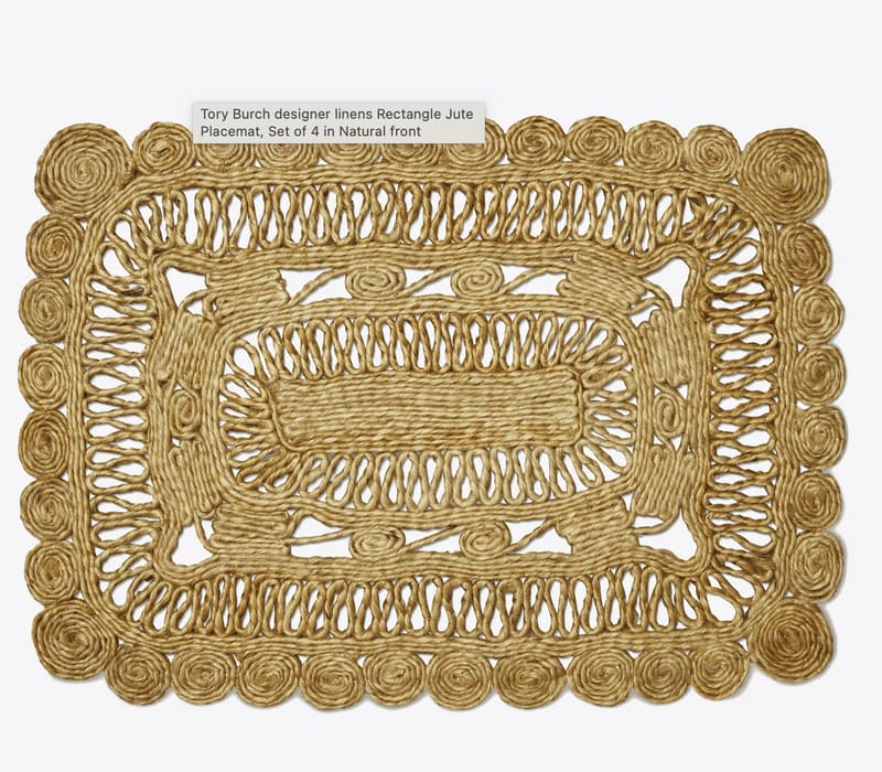 The hand-woven jute placemat adds a natural element to any table. Braids and coils create a scalloped border and unique patterns of texture. Set of four.